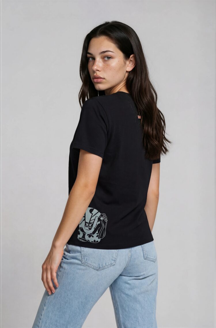 Hinano Classic T-shirt with a straight cut, round neck, and a design on the front and back